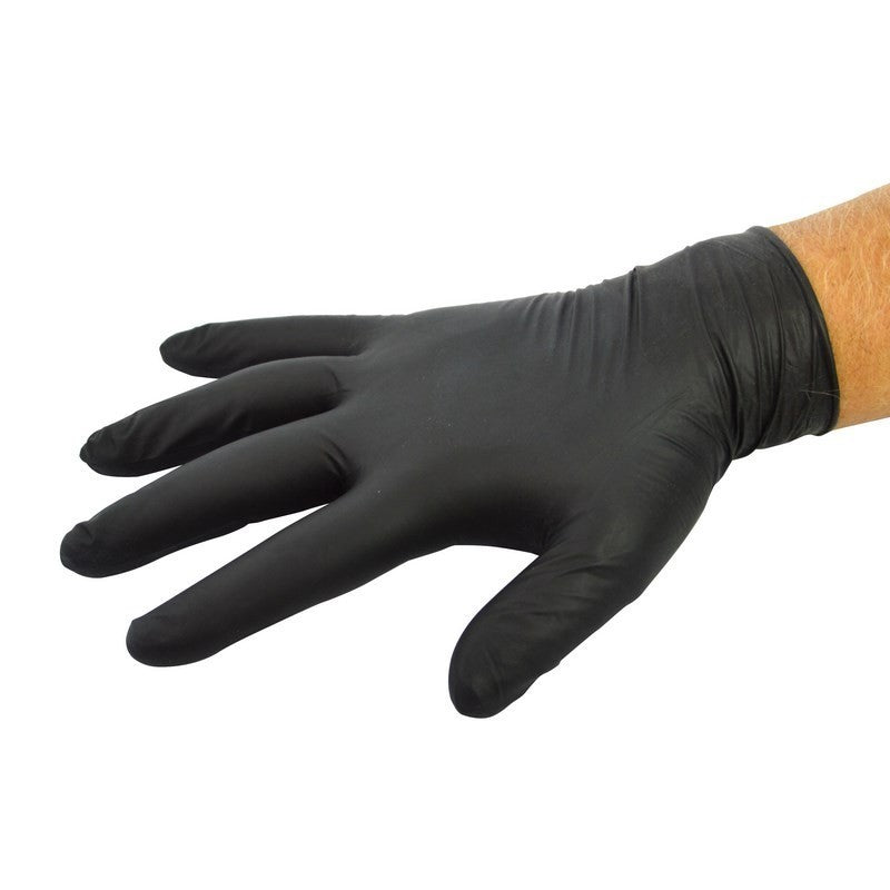 Zwarte wegwerphandschoenen van nitril, zeer dik.